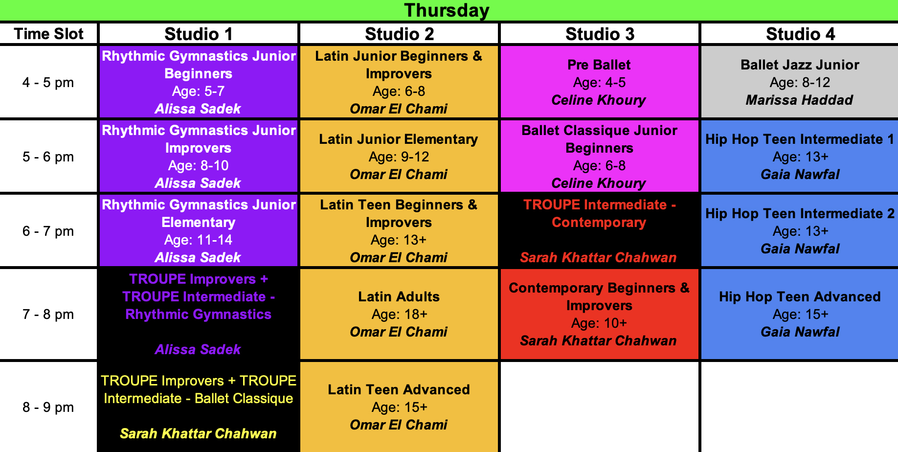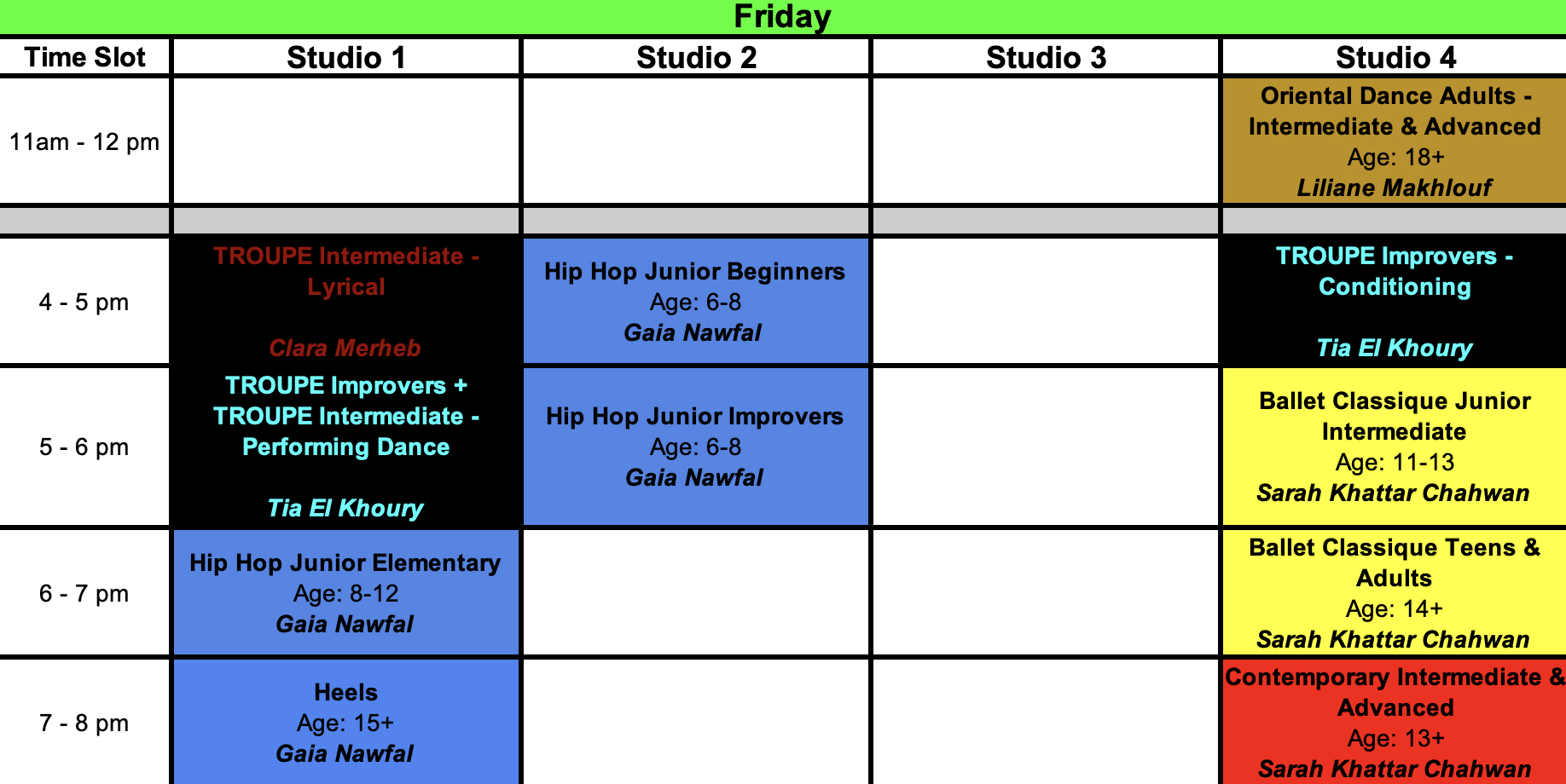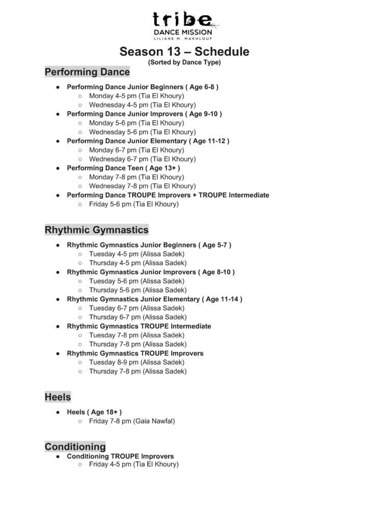 Schedule Sorted By Dance Type