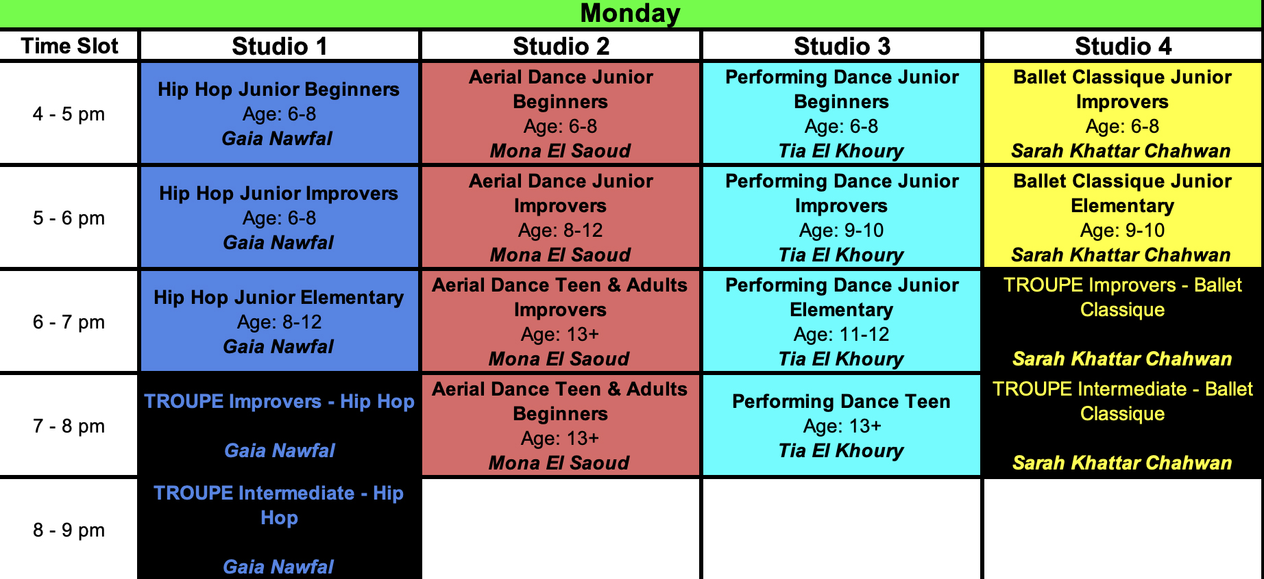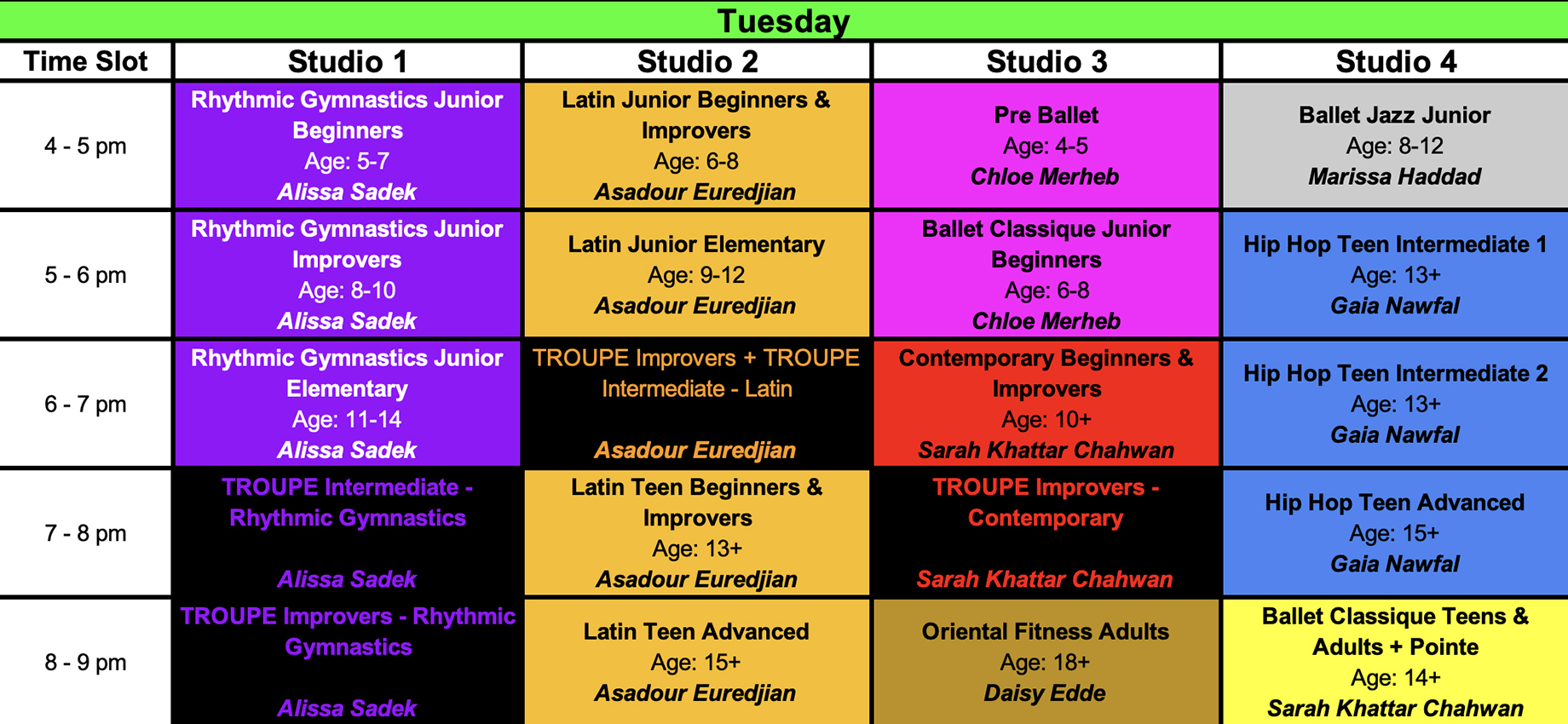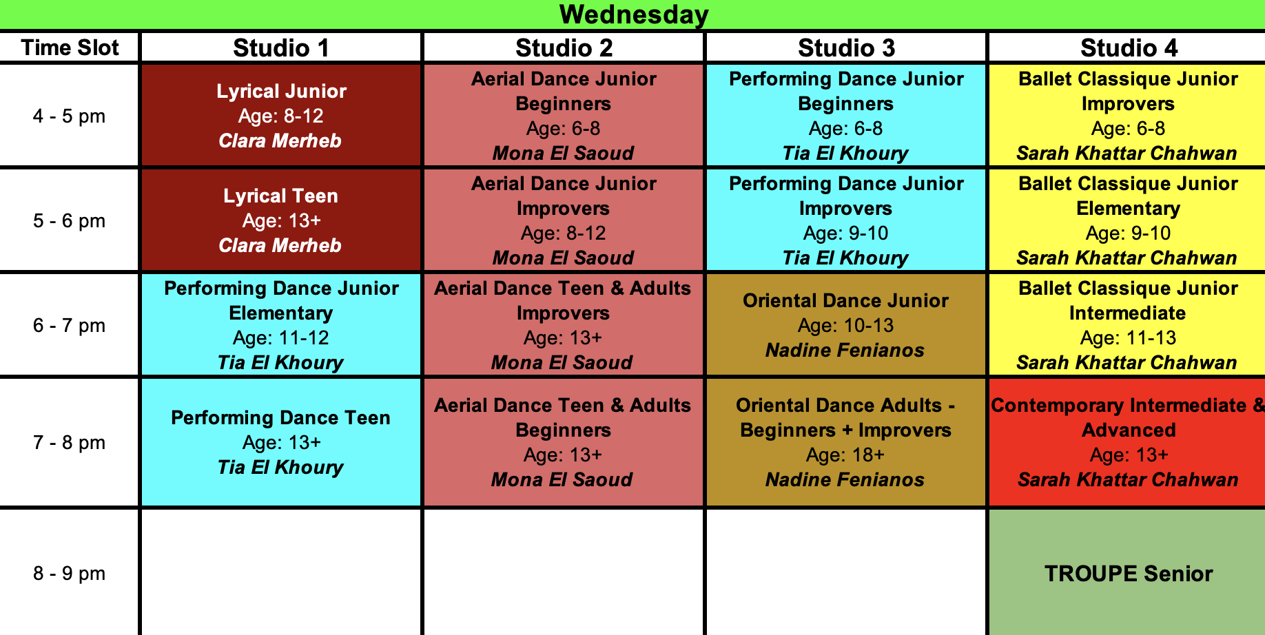 Schedule Sorted By Dance Type