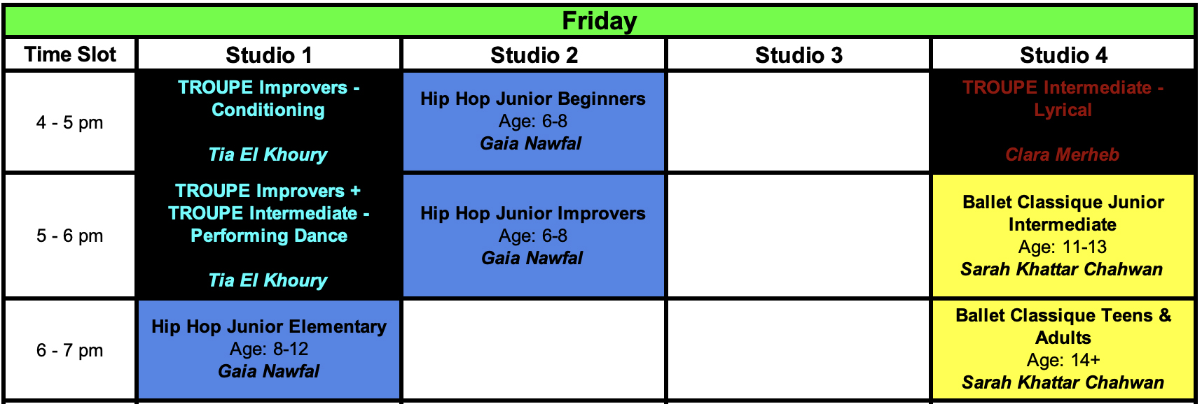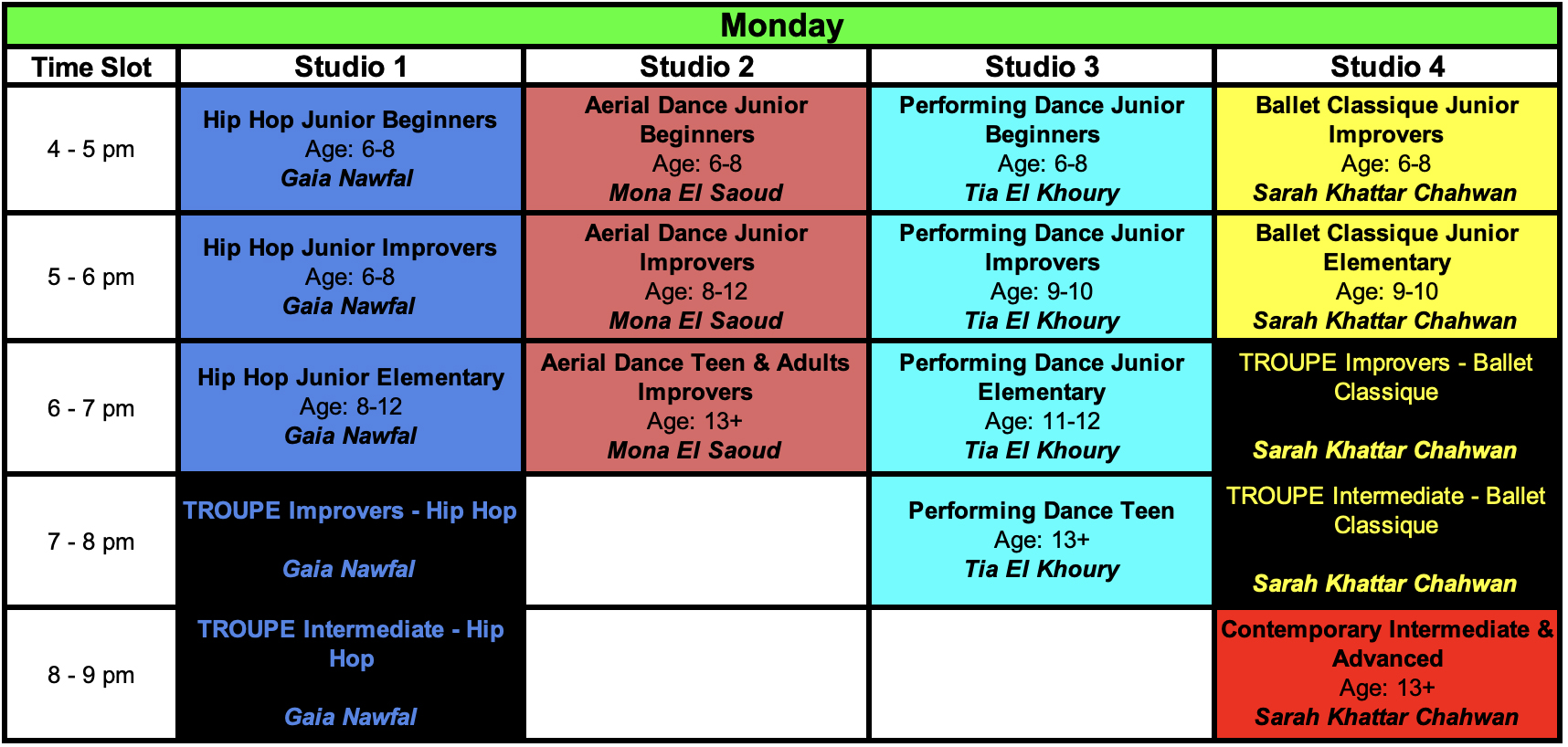 $110 / 8 sessions (Twice per week classes)